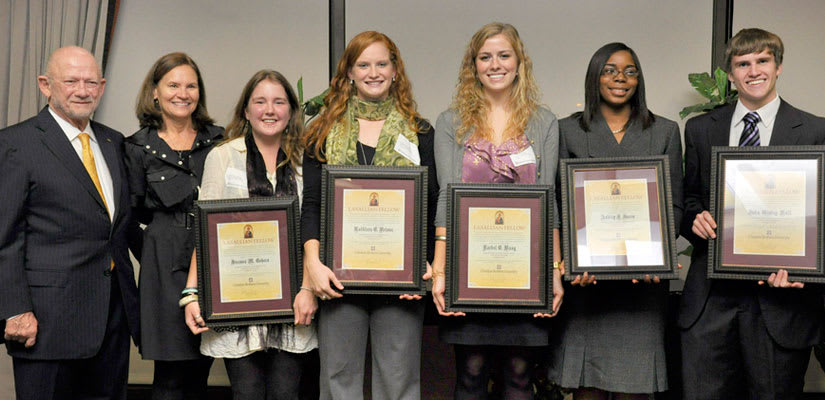The CBU Lasallian Fellowships are made possible through the generosity of Joyce A. Mollerup (Trustee Emerita) and her husband, Robert (Bob) Buckman (Trustee). According to the Buckmans’ direction, five senior students are selected each year for the distinction of CBU Lasallian Fellow because they embody the values set forth by CBU’s founder, St. John Baptist de La Salle. These awards are presented based upon the reflection of Lasallian values in their scholarship, leadership, and service. Students are nominated by CBU faculty and staff because of their commitment to the underserved, their sensitivity to social and community needs, the active nature of their faith, and their creative and innovative approach to solving the problems of society and changing the world around them. Each Lasallian Fellow is awarded a one-time stipend upon graduation as a means of perpetuating their work in the community.