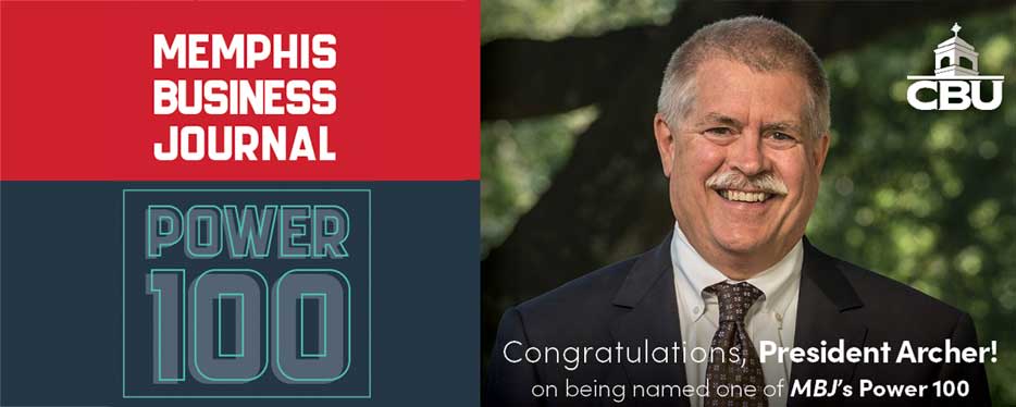 The Memphis Business Journal’s fifth annual Power 100 list was released with online profiles of the area’s top business and community leaders on March 25. The 2024 Power 100 profiles the 100 most influential leaders in the Mid-South, as chosen by the MBJ editorial staff last fall. CBU President David Archer is among the 100 selected to this prestigious list. He was also selected to the 2023 Power 100 list.