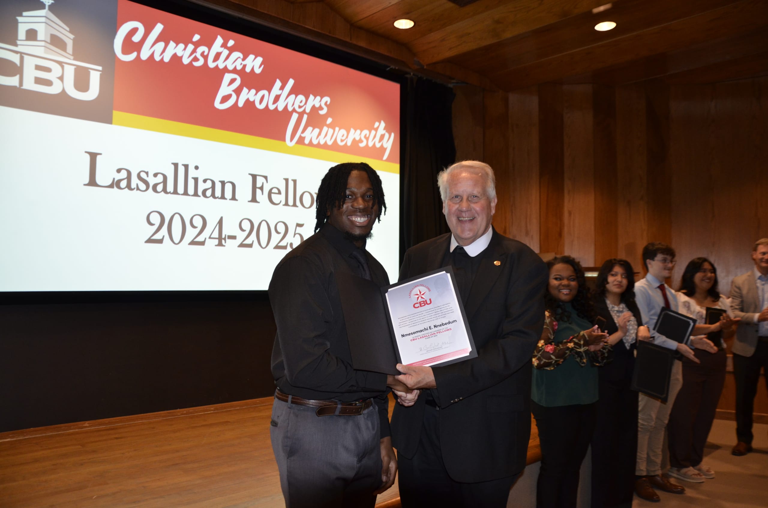 Leaving his legacy at CBU, Nmeso is among five seniors named to the Class of 2025 Lasallian Fellows, a top honor at the university. Those selected are nominated by faculty and staff for how they embody the values of scholarship, service, inclusion, faith and justice set forth by CBU’s founder, St. John Baptist de La Salle.